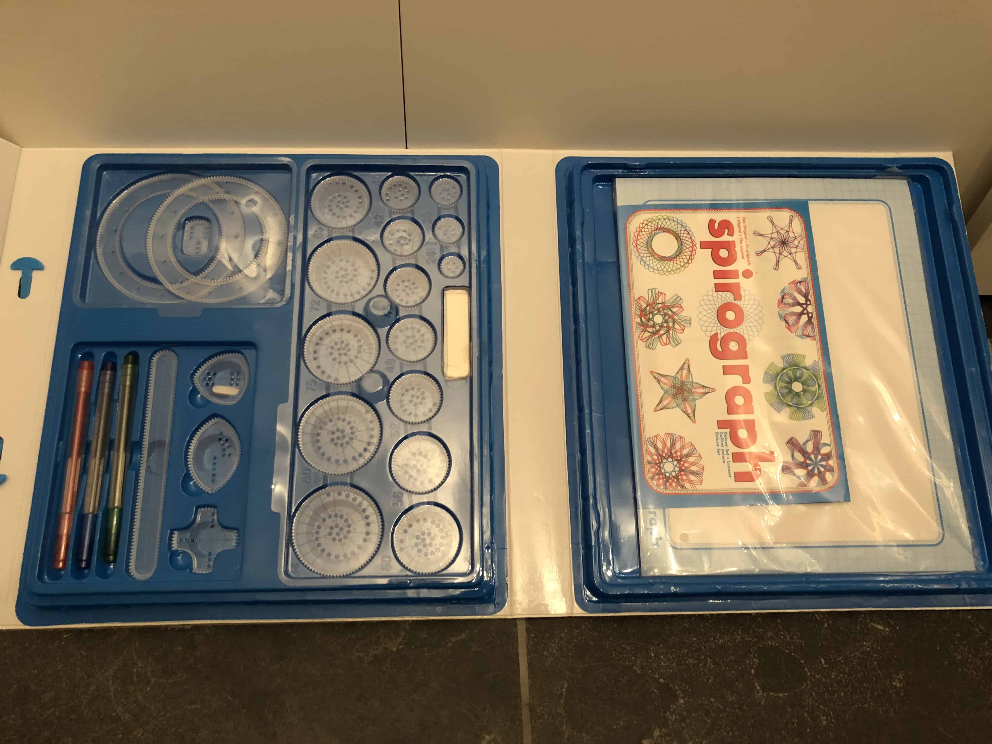 Spirograph, ik heb daar zelf als kind ook eindeloos mee gespeeld. Deze Deluxe set is wel heel erg mooi en uitgebreid.