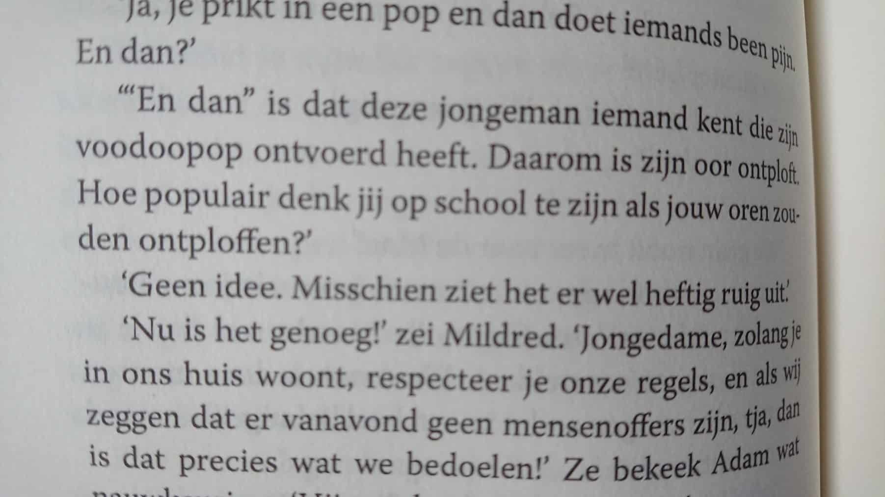 Geen beste dag voor voodoo is slapstickhorror voor tieners. Eindelijk hardop lachen om young adult! Vol gruwelijke grappen, vanaf 13 jaar, zo staat op de website van uitgeverij De Fontein te lezen. En zo kwam ik er ook achter dat ‘slapstickhorror‘ een genre is….