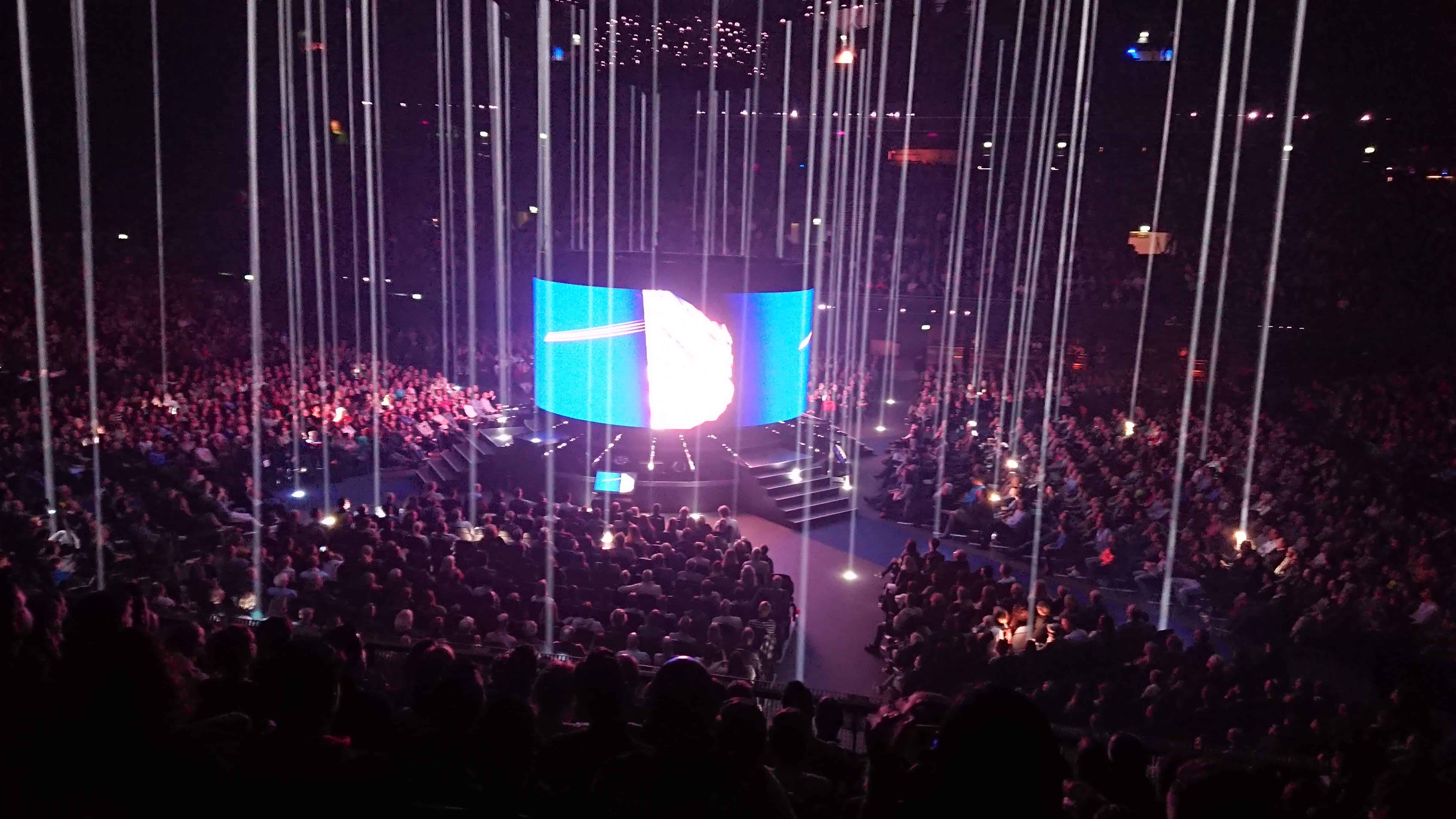 En het verhaal dat in de prachtige entourage van de ZiggoDome in het midden van de zaal met veel technische ondersteuning van licht, video, planeten die rond draaien, en geluid heeft twee kanten: