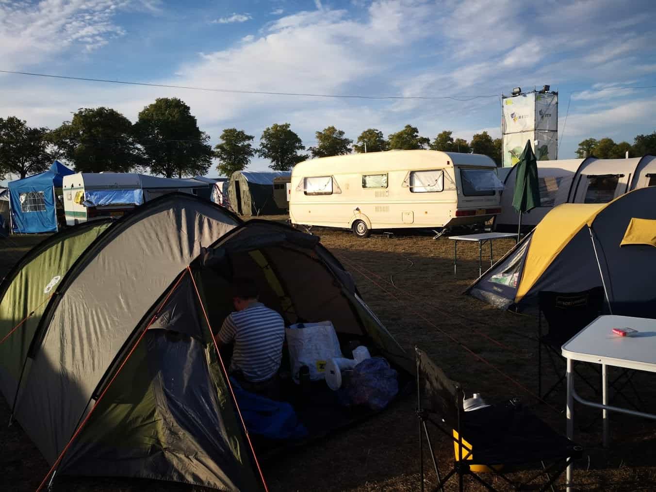 Mijn zoon en ik kwamen redelijk laat aan op maandagavond, maar tijden zijn geen probleem bij Campzone. We merkten meteen hoe relaxed de sfeer was en hoe vriendelijk (en behulpzaam) de mensen zijn die daar al dan niet als vrijwilliger betrokken zijn. In no-time hadden we een plekje voor onze tent en wisten we waar we alles konden vinden of vragen.