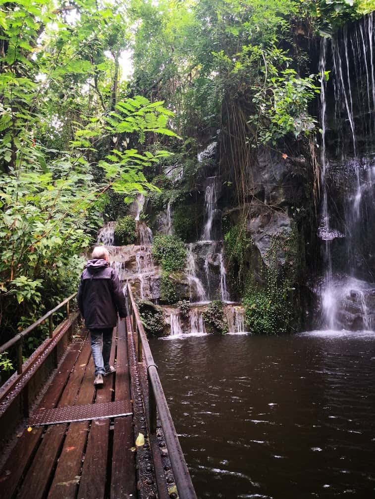 Even later loop je in de jungle. Je kinderen gaan over een slingerende touwbrug die gevaarlijk dicht bij het water hangt. Zelf loop je iets verder door, want je wordt aangetrokken door het geluid van water. Even later zie je een schitterende waterval. Wanneer je kinderen uitgeklommen zijn, loop je verder. Wanneer de waterval minder hard klinkt en je even stil blijft staan hoor je het: enorm veel verschillende vogels. Wat een schitterend geluid!
