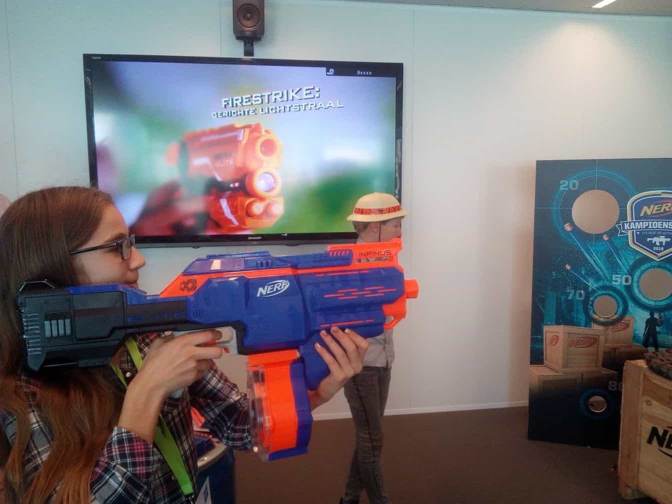 Het leukste is natuurlijk om buiten te spelen. Jezelf te verstoppen met je NERF en een battle te houden met je vriendjes. Wat mijn kinderen ook leuk vinden is om wedstrijden te houden. Er worden dan voorwerpen (bijvoorbeeld kartonnen dozen) op verschillende afstanden en verschillende hoogtes geplaatst en dan is het de bedoeling die zo snel mogelijk te raken.