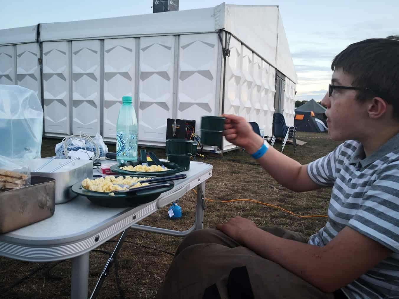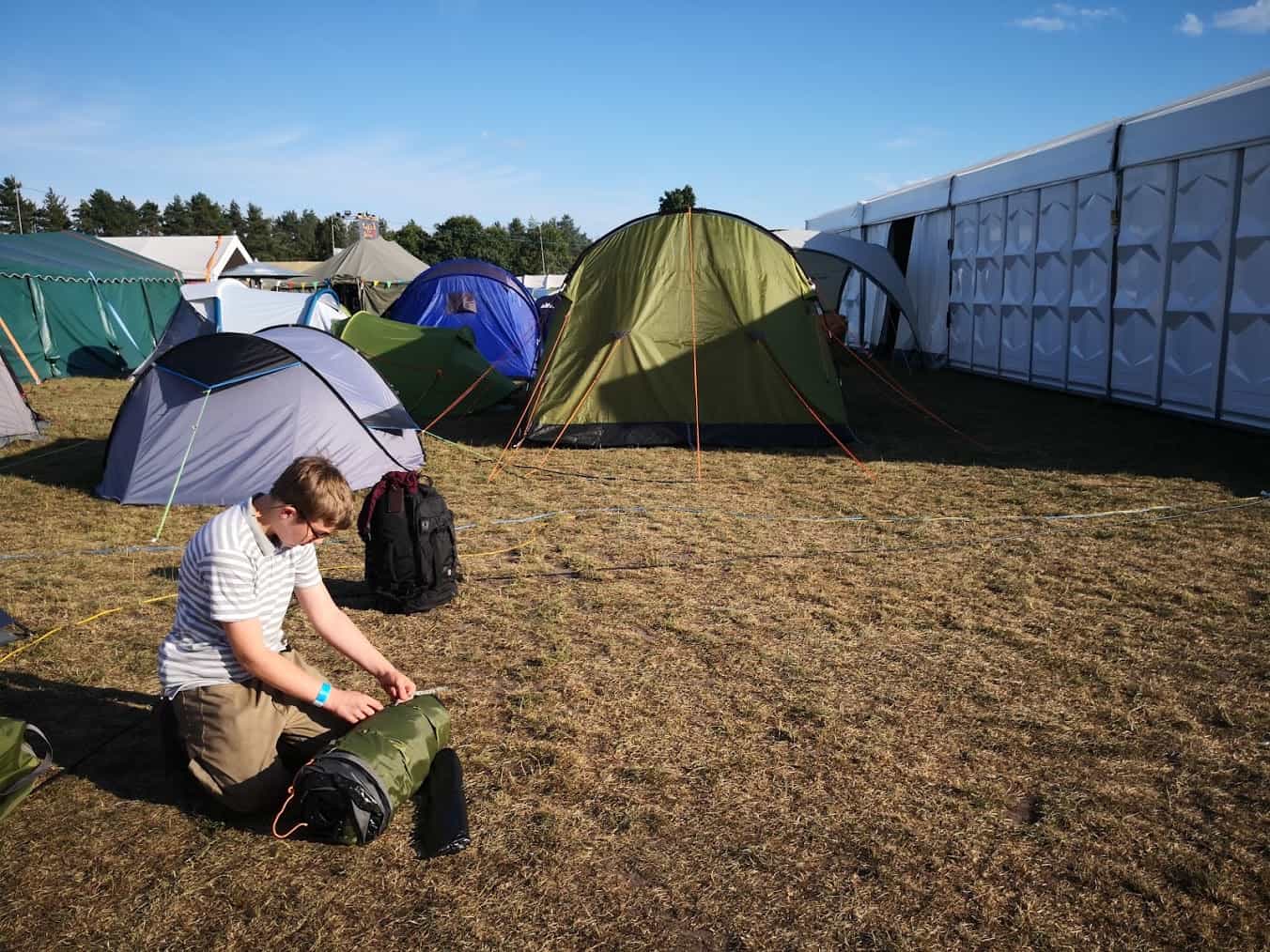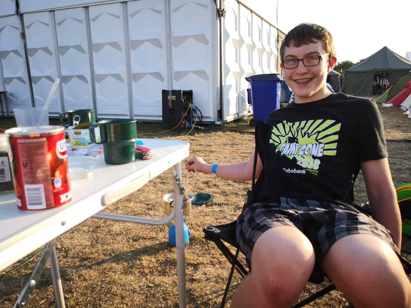 Mijn zoon en ik kwamen redelijk laat aan op maandagavond, maar tijden zijn geen probleem bij Campzone. We merkten meteen hoe relaxed de sfeer was en hoe vriendelijk (en behulpzaam) de mensen zijn die daar al dan niet als vrijwilliger betrokken zijn. In no-time hadden we een plekje voor onze tent en wisten we waar we alles konden vinden of vragen.