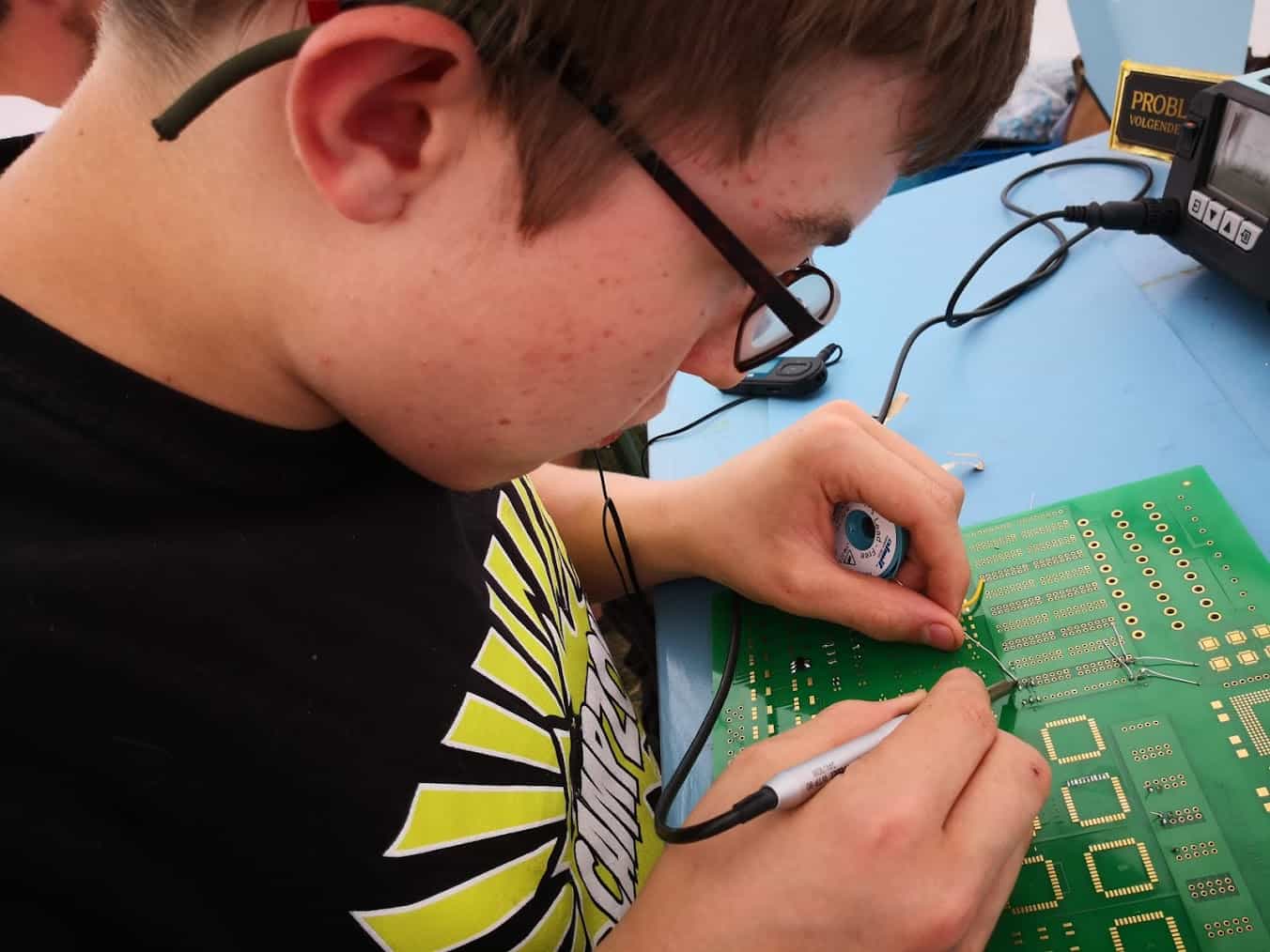 Ook ’tinkering’ tenten ontbreken niet: je kunt er leren hacken, maar ook solderen of aan de slag met een arduino. Wat je maar wilt.