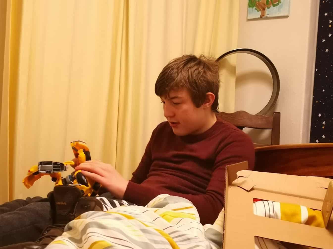 Waar ik had verwacht dat dit iets was wat ‘even’ leuk zou zijn (maar dan wel héél leuk!) is het hier een onverwachts succes. Behalve het ombouwen van de Optimus Prime worden er ook avonturen mee gespeeld. Hij wordt iedere dag wel gepakt om mee te spelen!